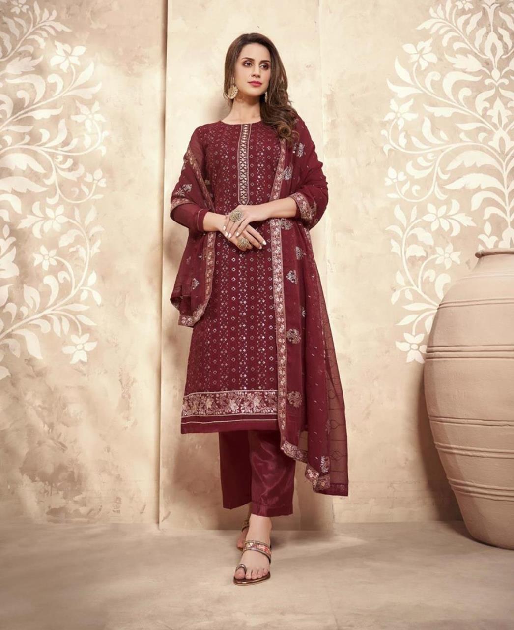 Normally size is measured between the underarm stitching lines from the stressed kameez.
