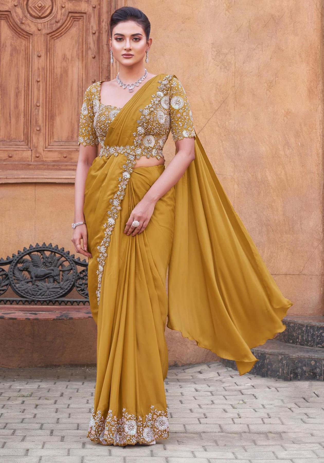 In Pre-stitched saree you will get the saree with stitched plates, belt on the waist and adjustable hooks. So you can wear the saree like a skirt