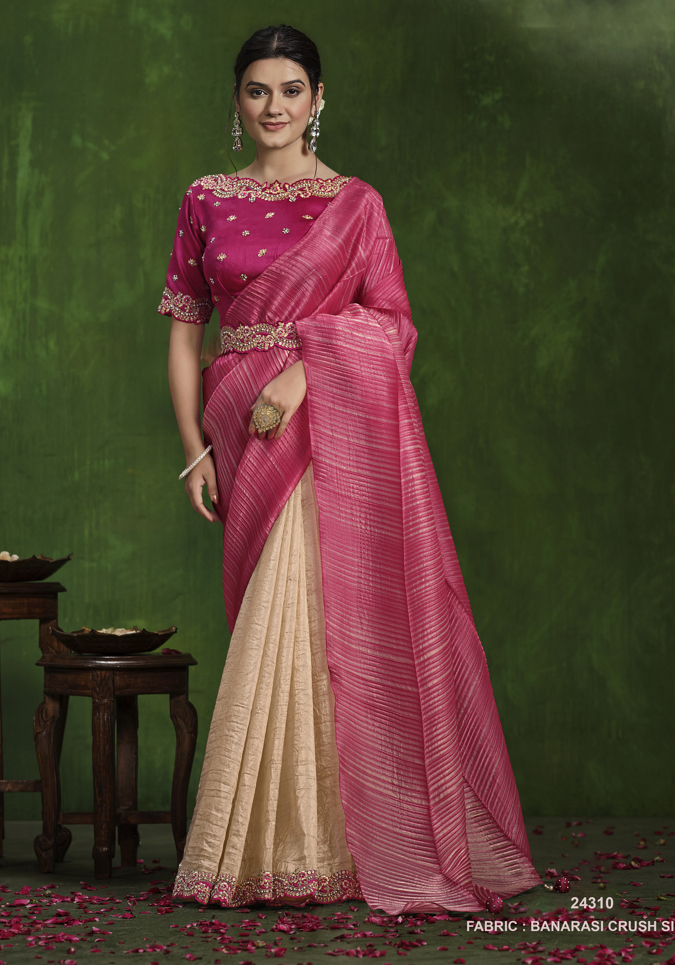 In Pre-stitched saree you will get the saree with stitched plates, belt on the waist and adjustable hooks. So you can wear the saree like a skirt