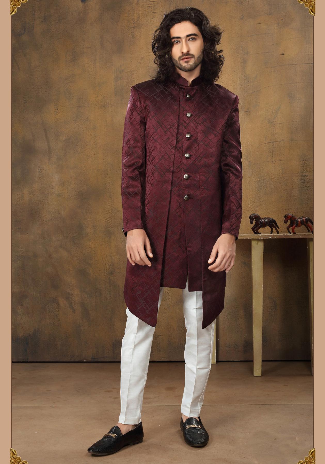 Picture of Enticing Silk Maroon Indo Western Picture of Enticing Silk Maroon Indo Western