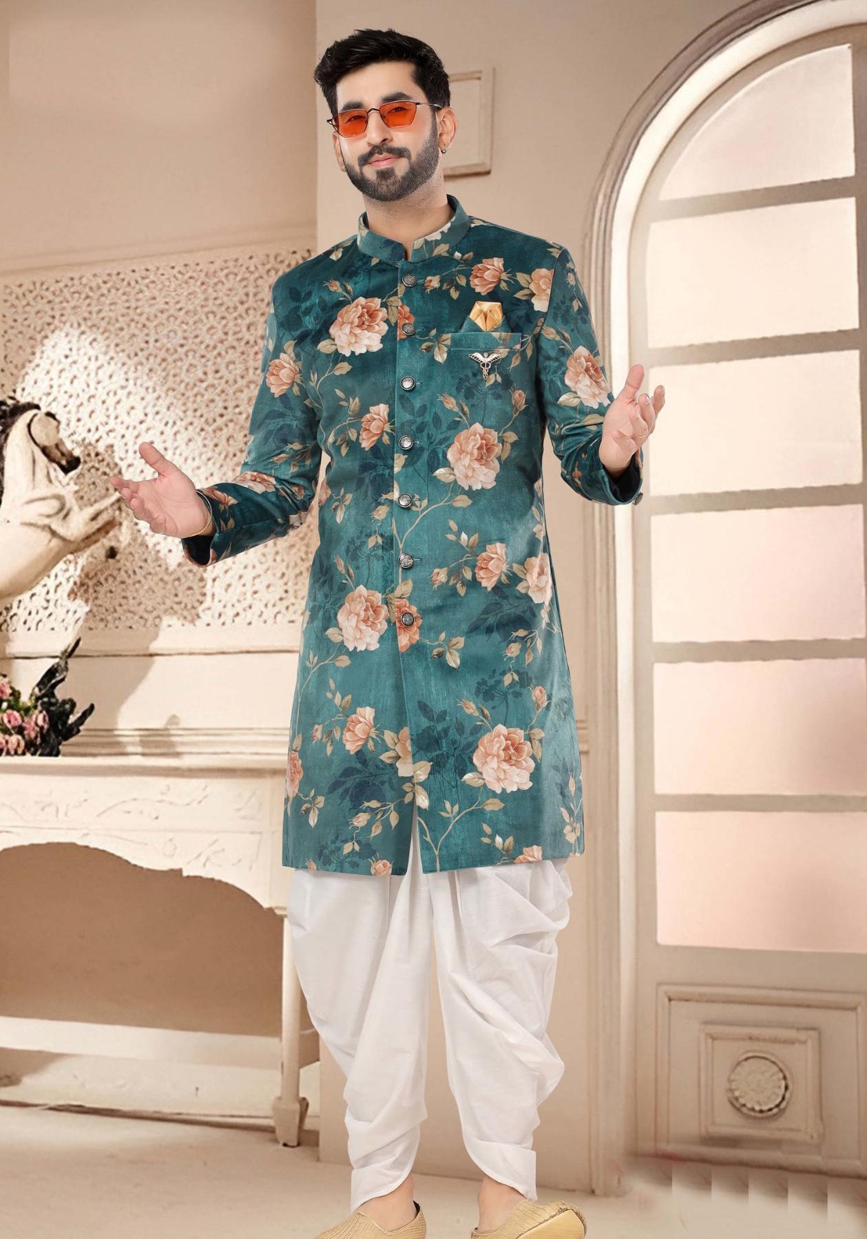 Buy Enticing Synthetic Cadet Blue Indo Western online.