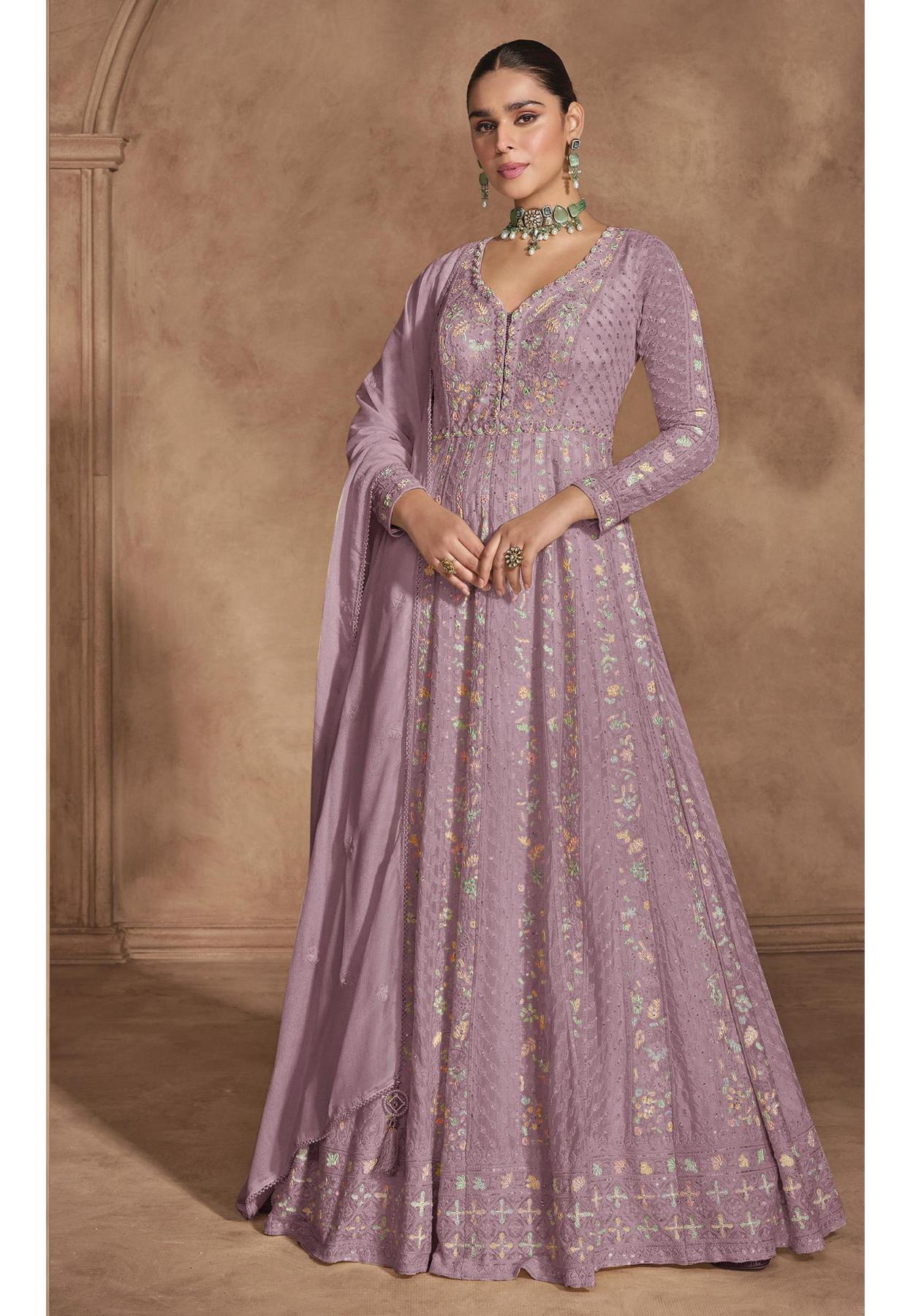 Excellent Chiffon Dim Gray Anarkali Salwar Kameez