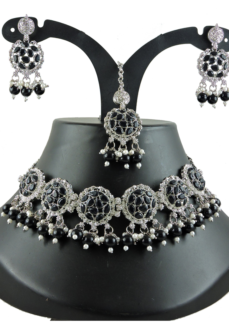 Details: 1 Necklace Set, 2 Earrings, 1 Mang Tikka.