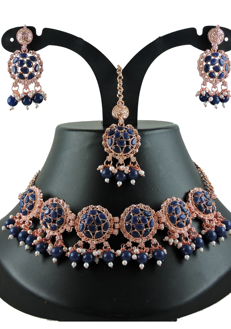 Buy Excellent Georgette Dark Blue Necklace Set online.