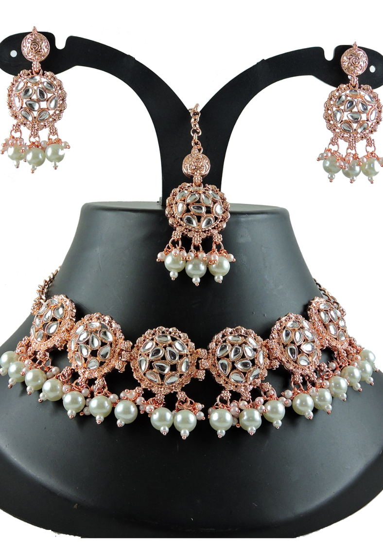 Details: 1 Necklace Set, 2 Earrings, 1 Mang Tikka.