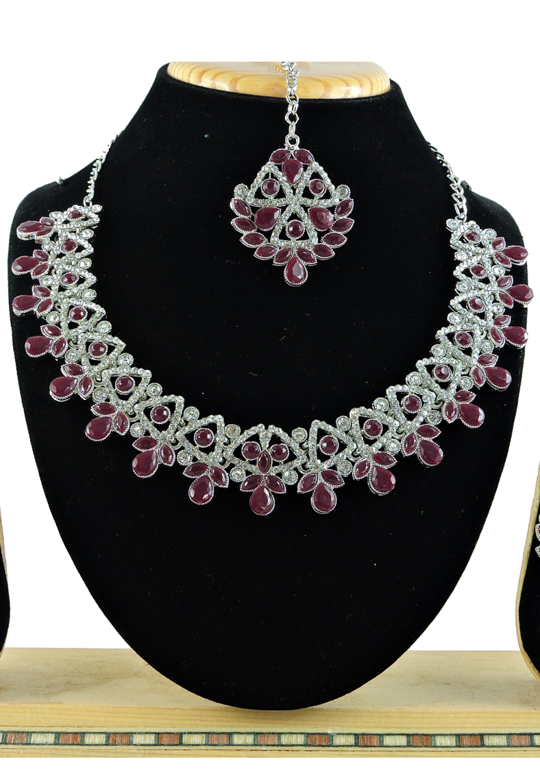Picture of Excellent Maroon Necklace Set Picture of Excellent Maroon Necklace Set