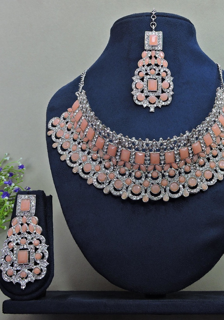 Details: 1 Necklace, 1 Pair Earrings, 1 Mang Tikka.