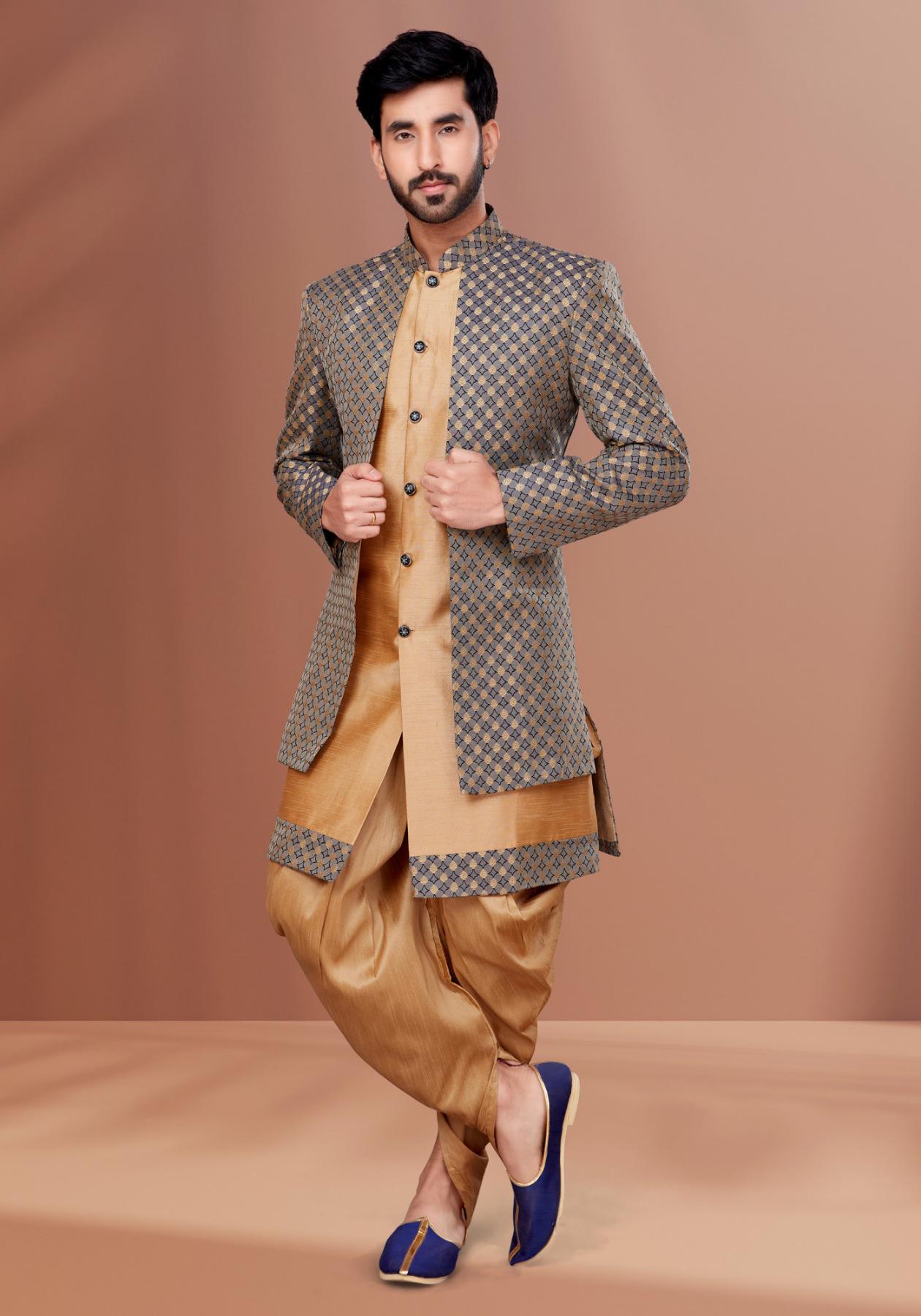 Picture of Excellent Satin & Silk Burly Wood Indo Western Picture of Excellent Satin & Silk Burly Wood Indo Western