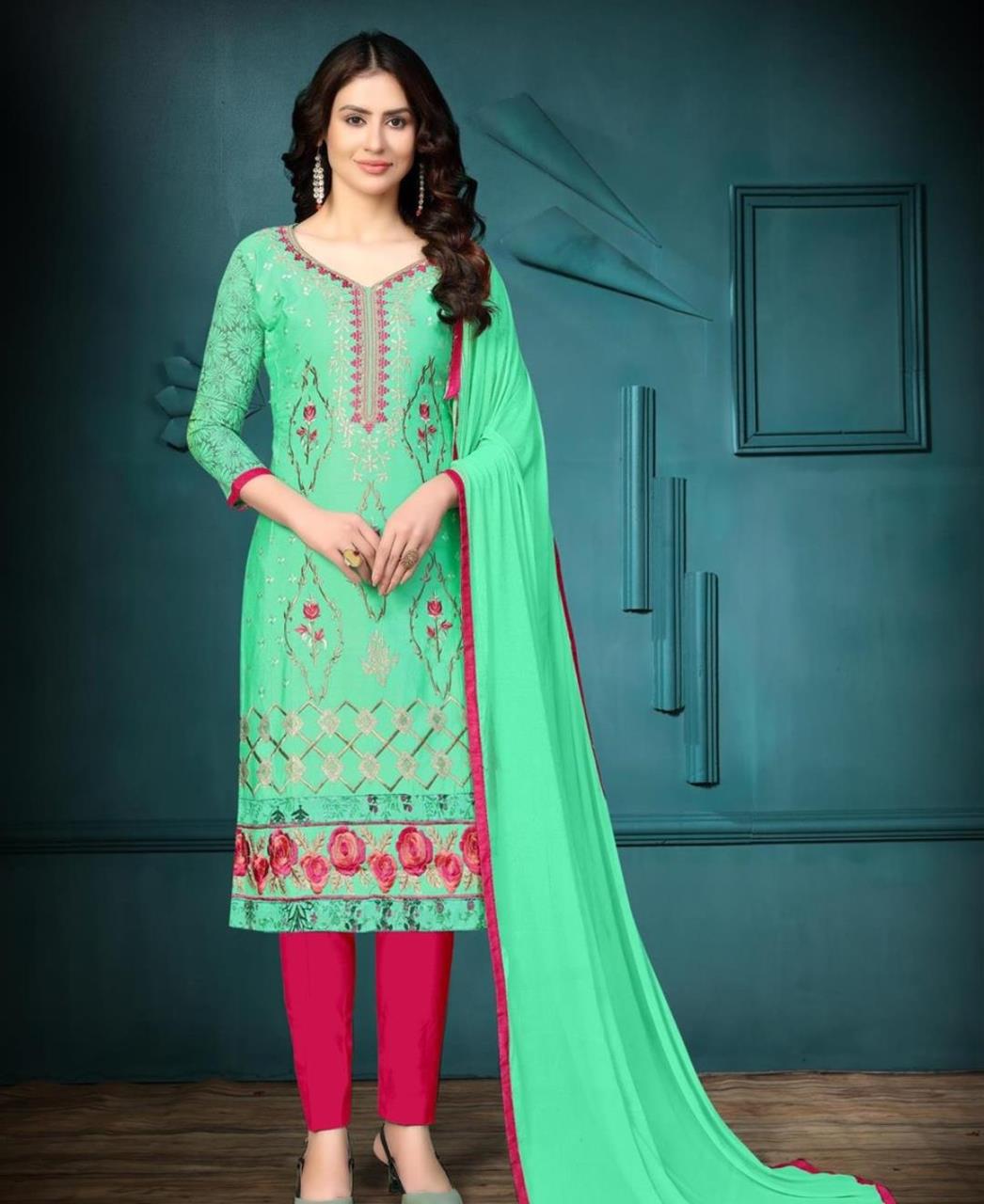 Normally size is measured between the underarm stitching lines from the stressed kameez.