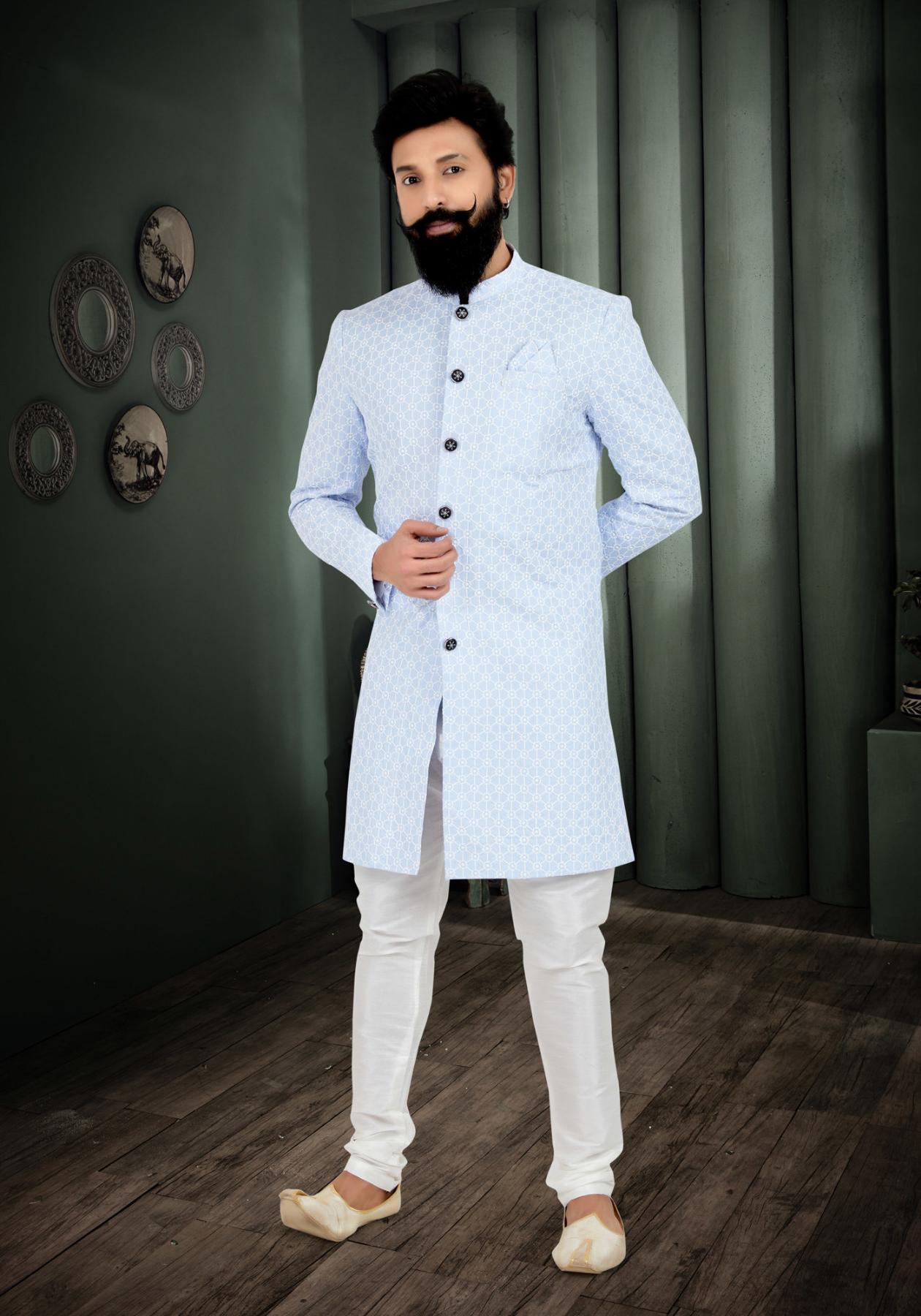 Buy Excellent Silk Light Steel Blue Indo Western online.