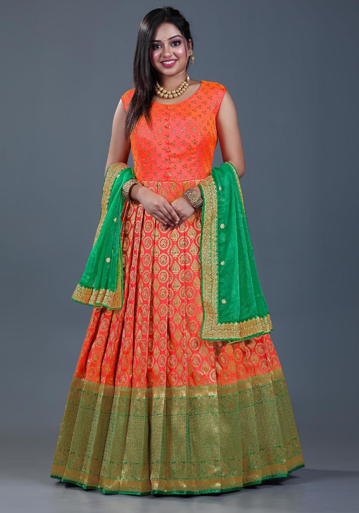 Gown beautifully designed with Embroidery Zari woven work with Jerkan.