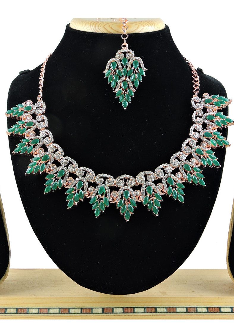 Details: 1 Necklace Set, 2 Earrings, 1 Mang Tikka.