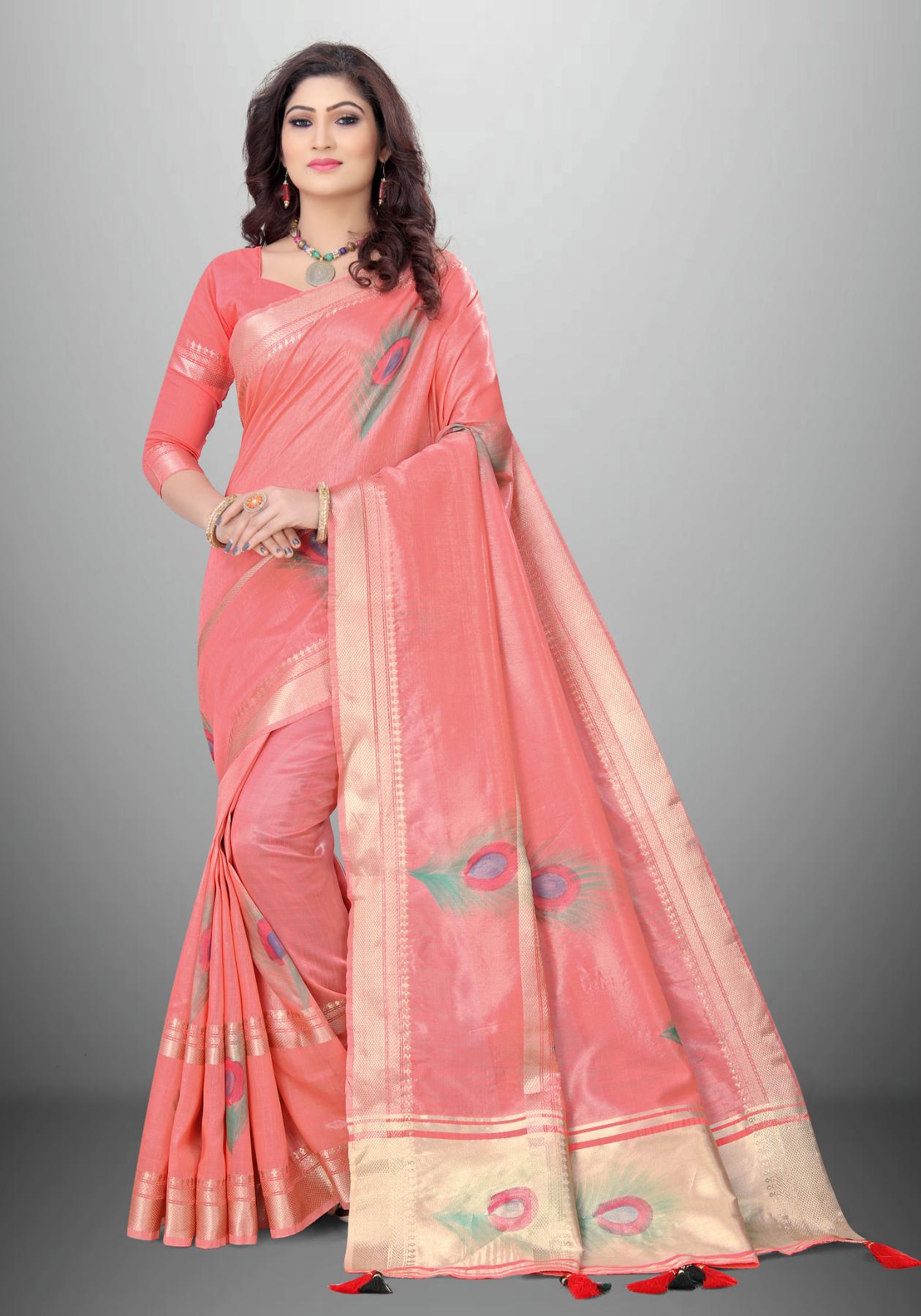 Buy Exquisite Cotton & Linen Light Coral Saree online.