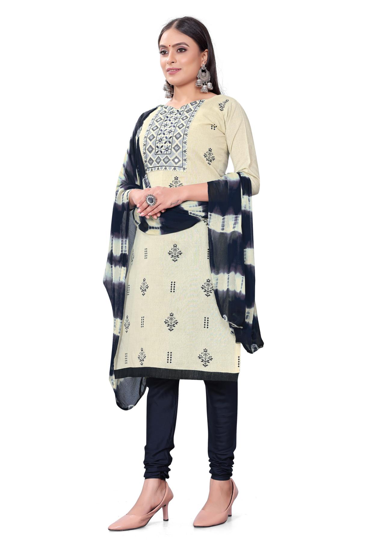 Buy Exquisite Cotton Off White Straight Cut Salwar Kameez online.