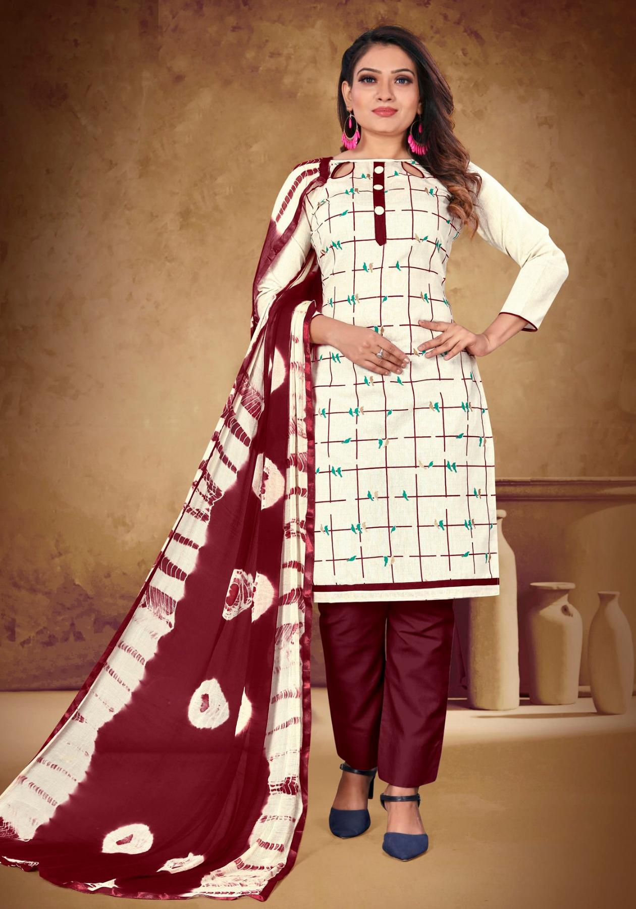 Normally size is measured between the underarm stitching lines from the stressed kameez.