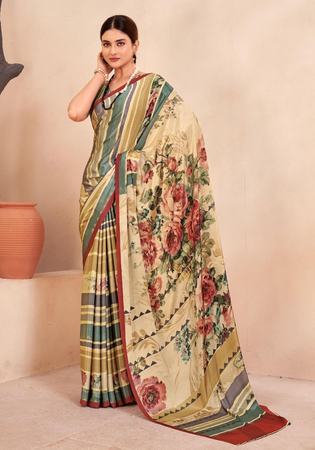 Buy Exquisite Crepe & Silk Dark Khaki Saree online.