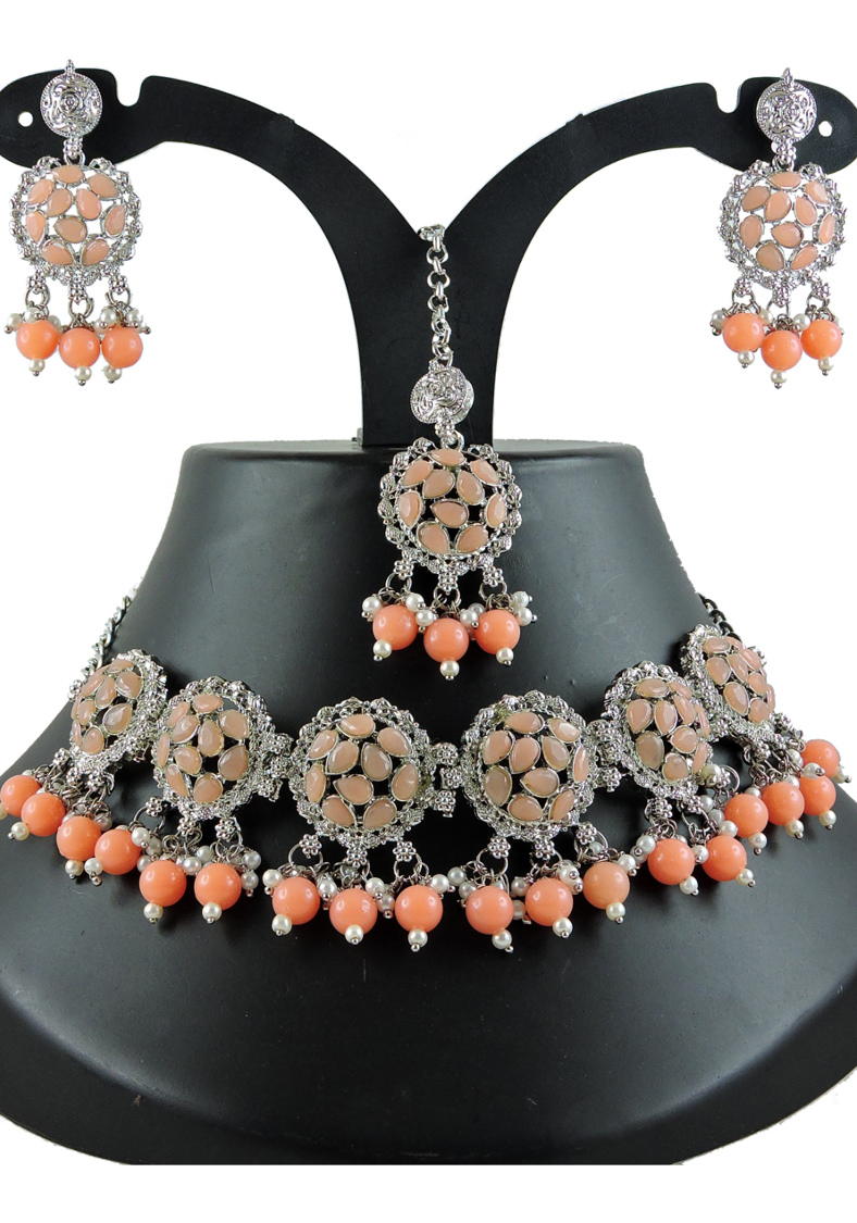 Details: 1 Necklace Set, 2 Earrings, 1 Mang Tikka.