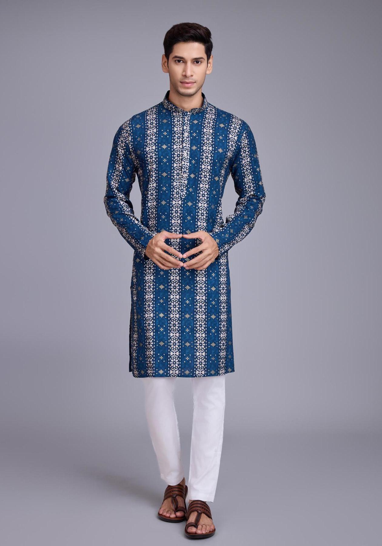 Buy Exquisite Rayon Midnight Blue Kurtas online.