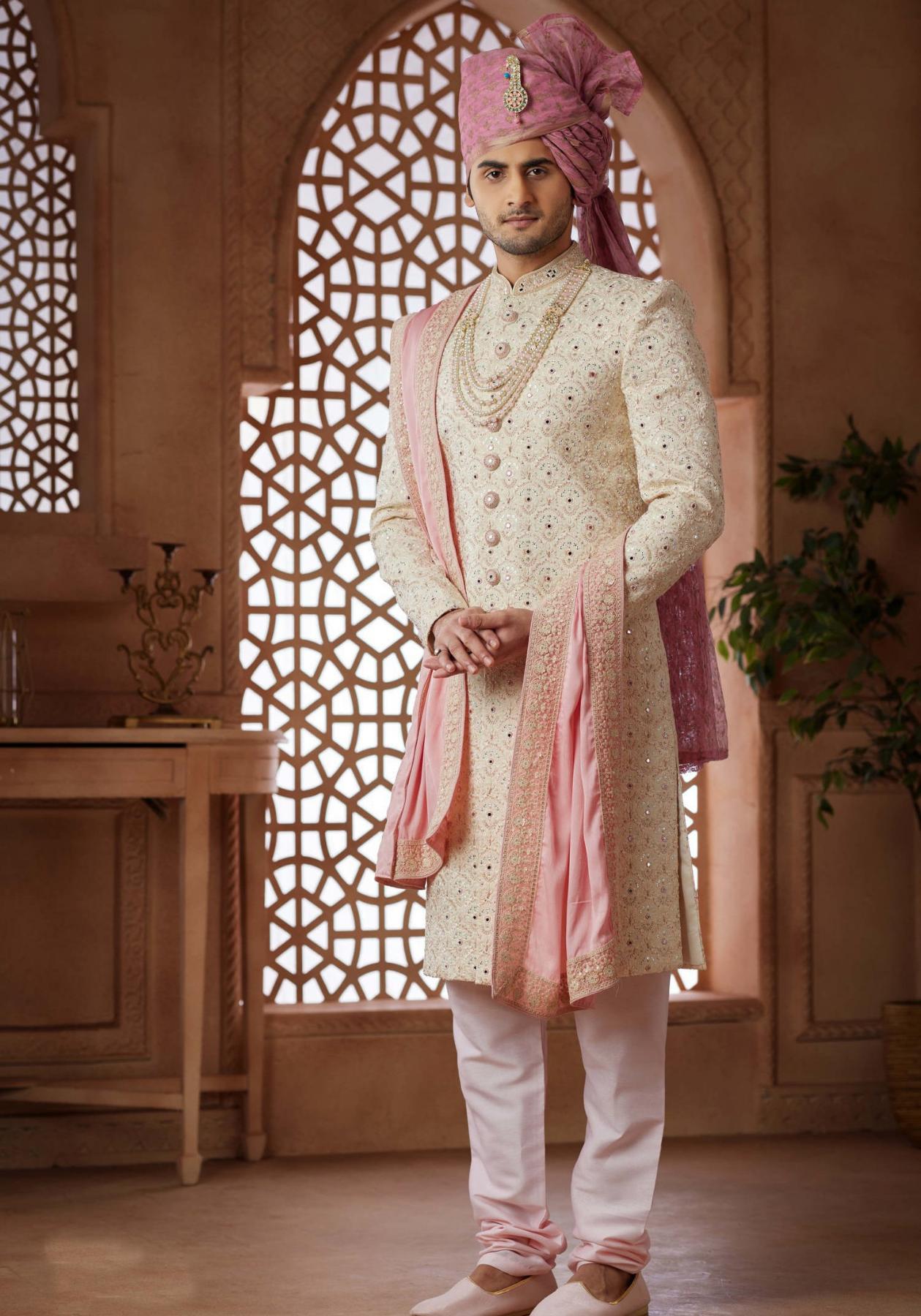 Picture of Exquisite Satin Off White Sherwani Picture of Exquisite Satin Off White Sherwani