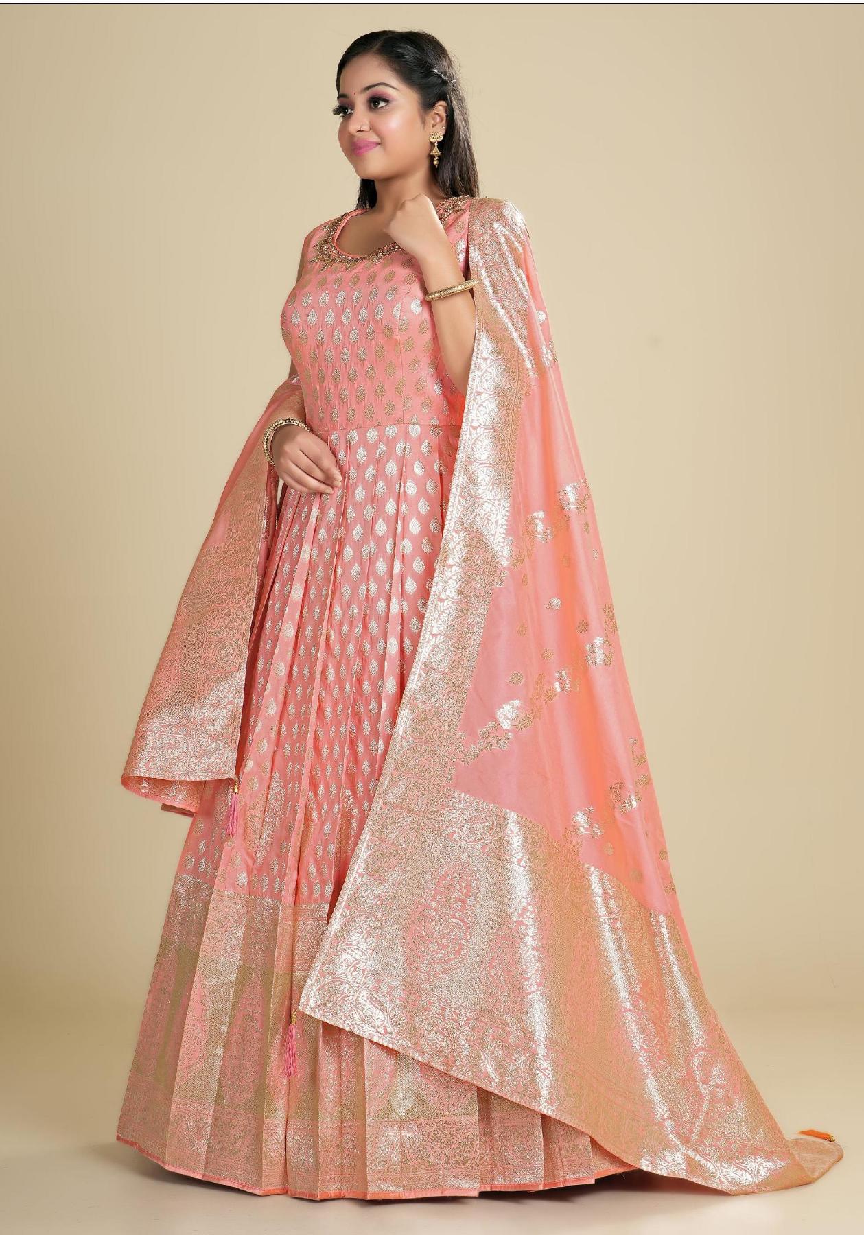 Buy Exquisite Silk Dark Salmon Readymade Gown online.