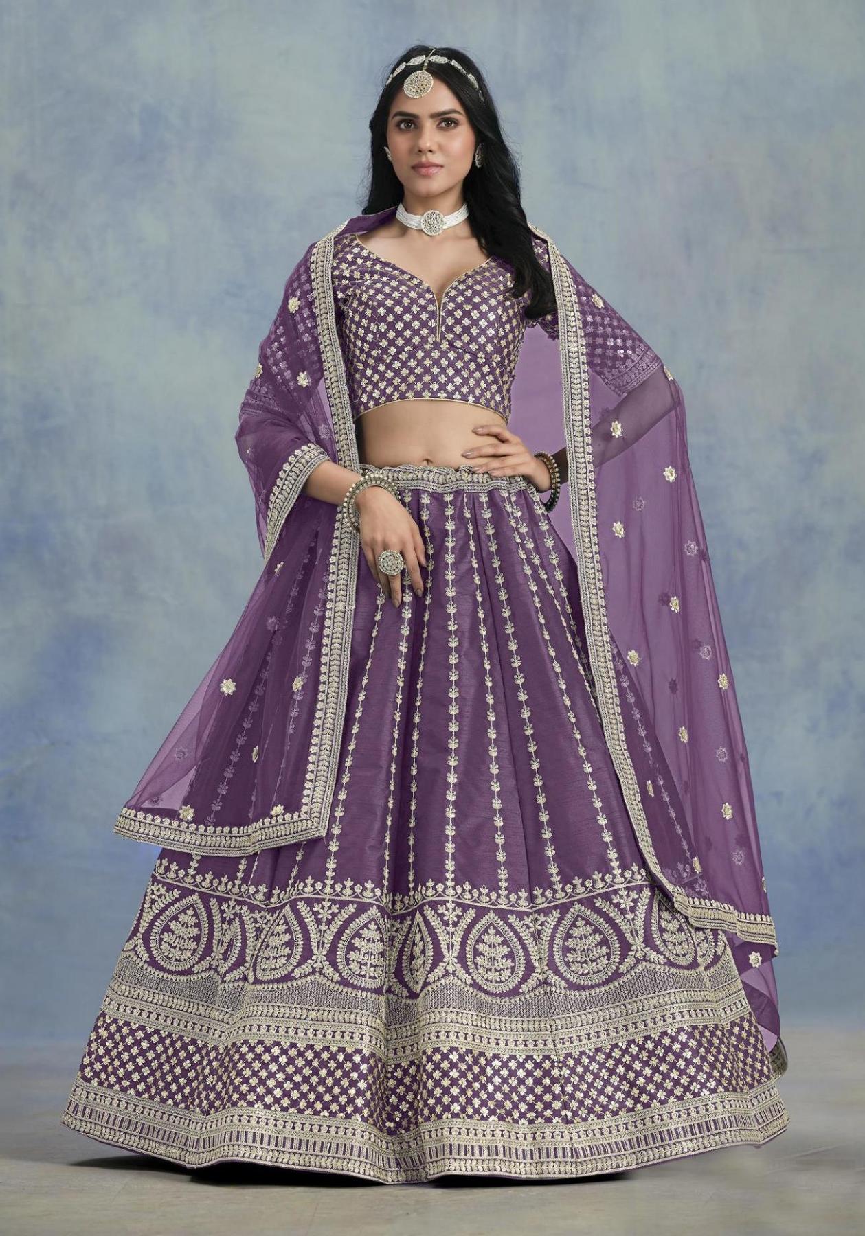 Buy Exquisite Silk Plum Lehenga Choli online.