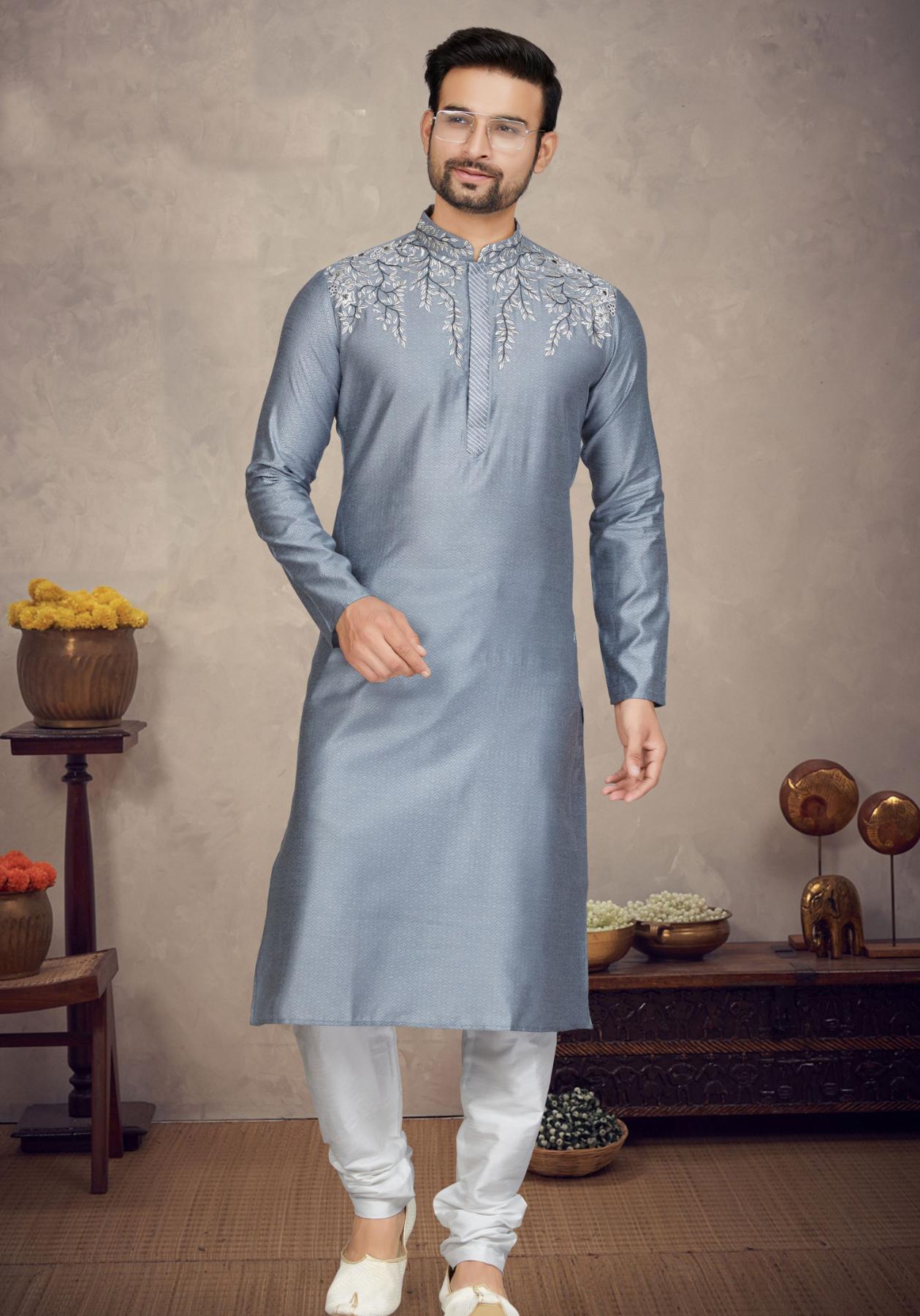 Buy Fascinating Cotton & Silk Light Slate Grey Kurtas online.