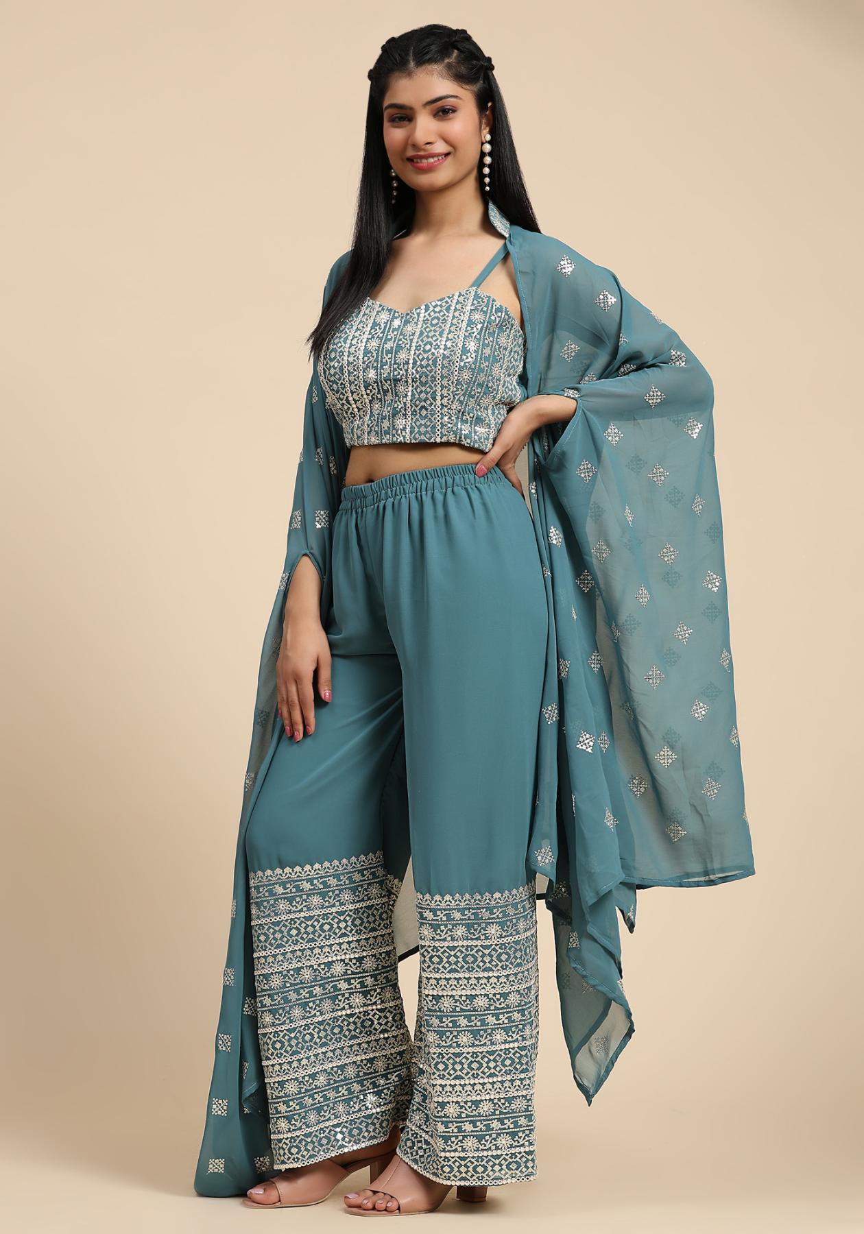 Buy Fascinating Georgette Cadet Blue Readymade Salwar Kameez online.