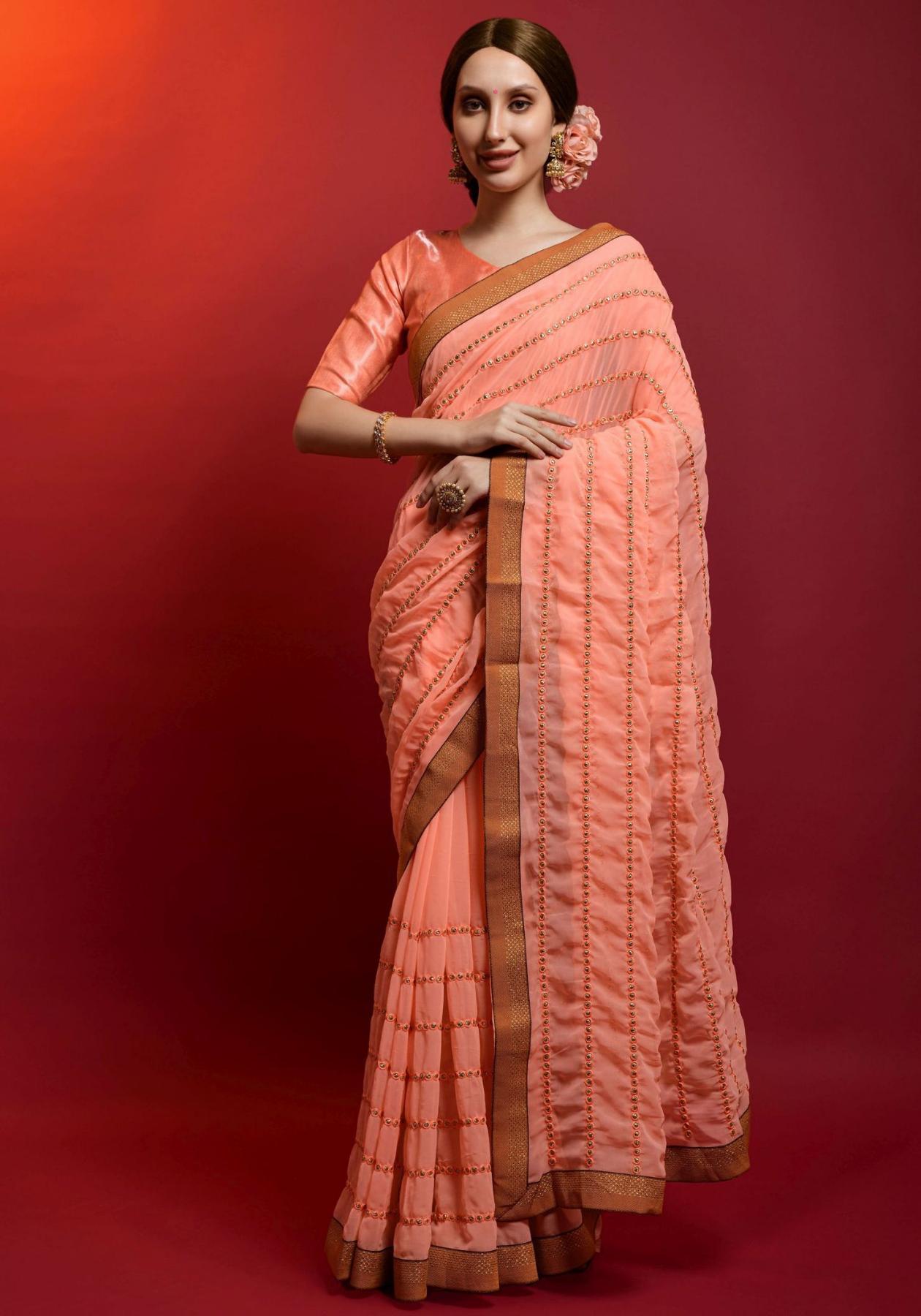 In Pre-stitched saree you will get the saree with stitched plates, belt on the waist and adjustable hooks. So you can wear the saree like a skirt