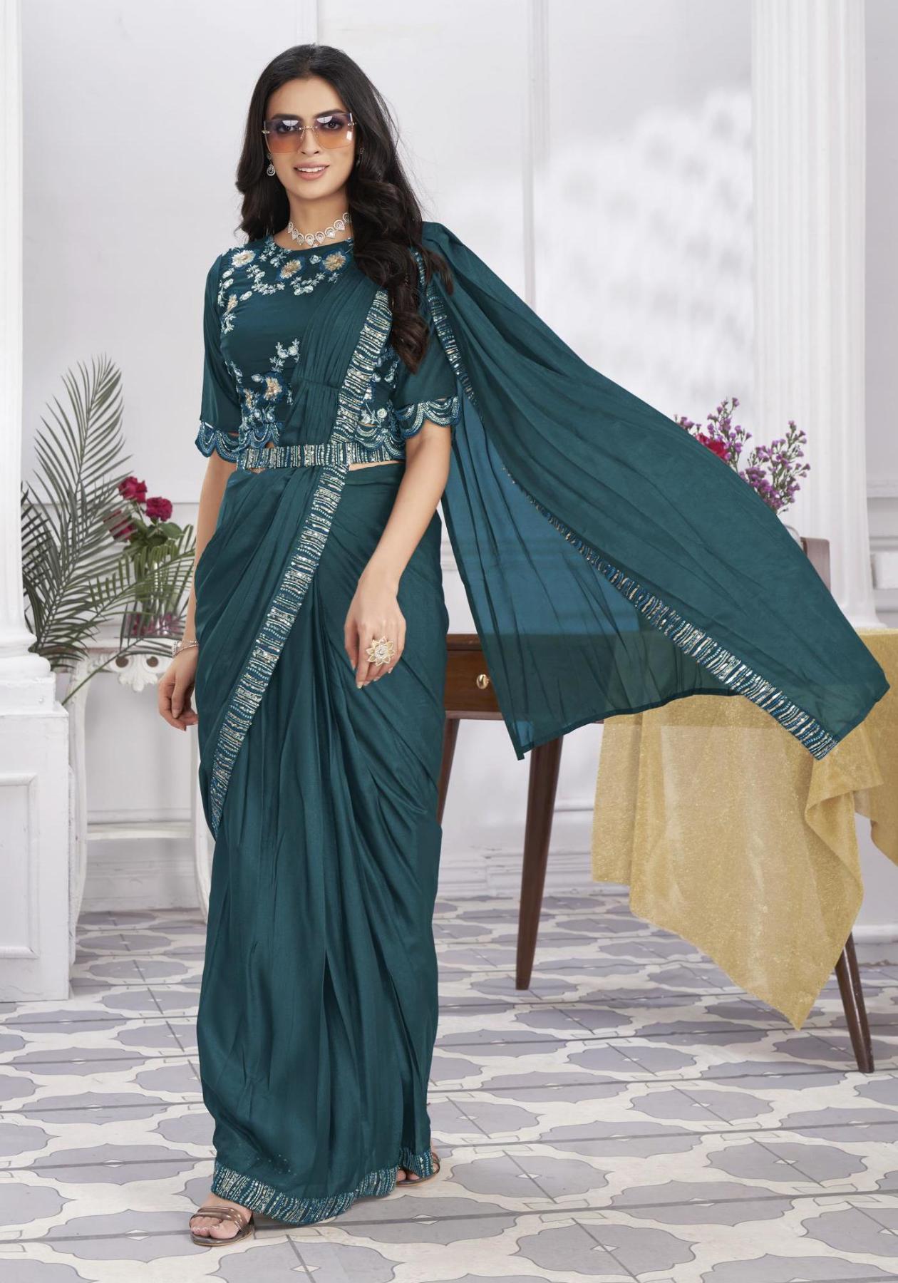 In Pre-stitched saree you will get the saree with stitched plates, belt on the waist and adjustable hooks. So you can wear the saree like a skirt