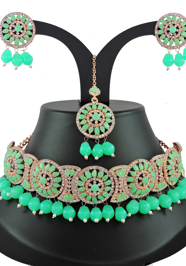 Details: 1 Necklace Set, 2 Earrings, 1 Mang Tikka.