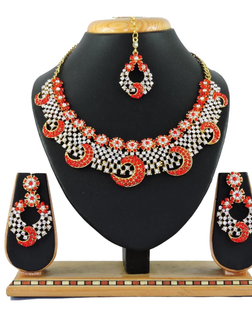 Buy Fascinating Red Necklace Set Jewellery Neckless For Women