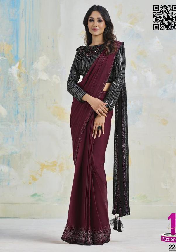 Saree Fabric:: Satin Silk Crepe.