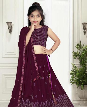 Buy Fascinating Wine Kids Lehenga Choli online.