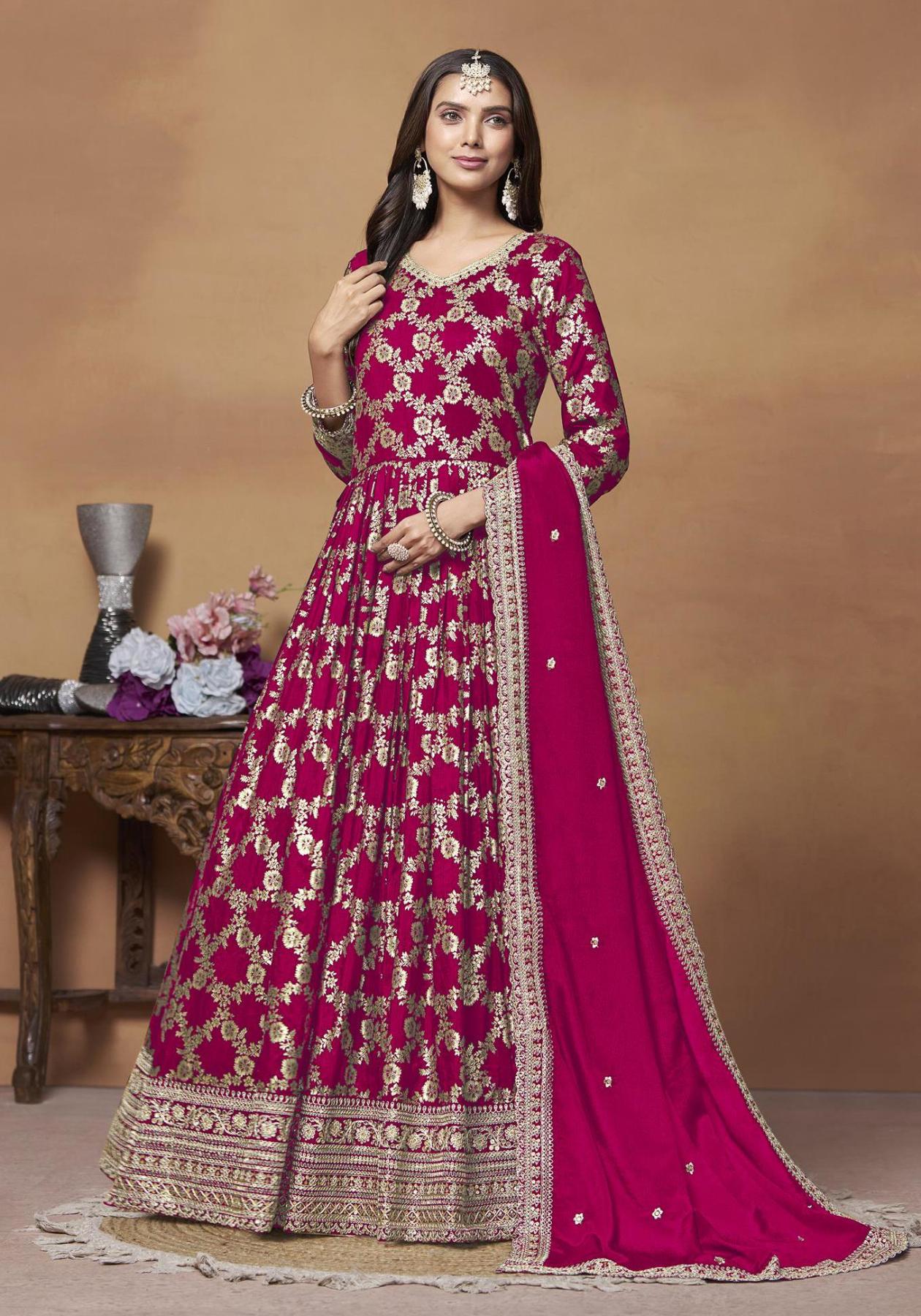 Buy Fine Chiffon Deep Pink Anarkali Salwar Kameez online.