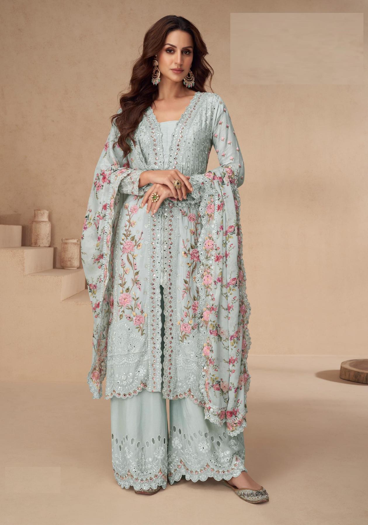 Normally size is measured between the underarm stitching lines from the stressed kameez.