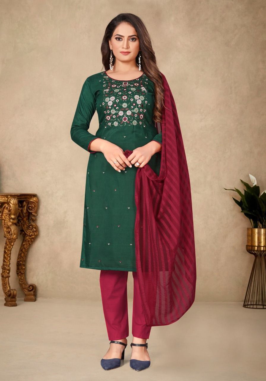 Buy Fine Cotton Dark Slate Grey Straight Cut Salwar Kameez online.