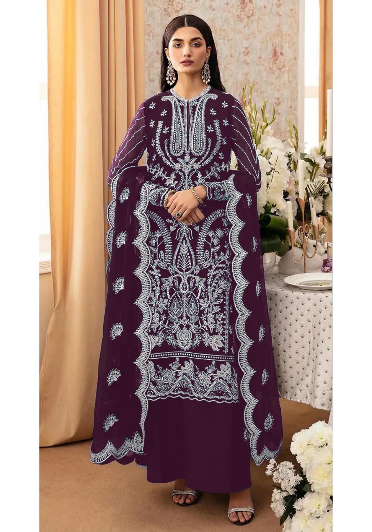 Buy Fine Georgette Purple Straight Cut Salwar Kameez online.