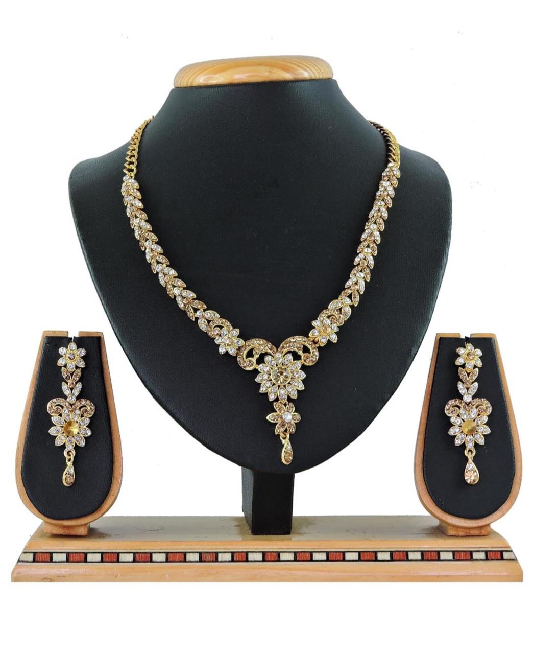 Buy Fine Gold+White Earrings Jewellery Neckless For Women