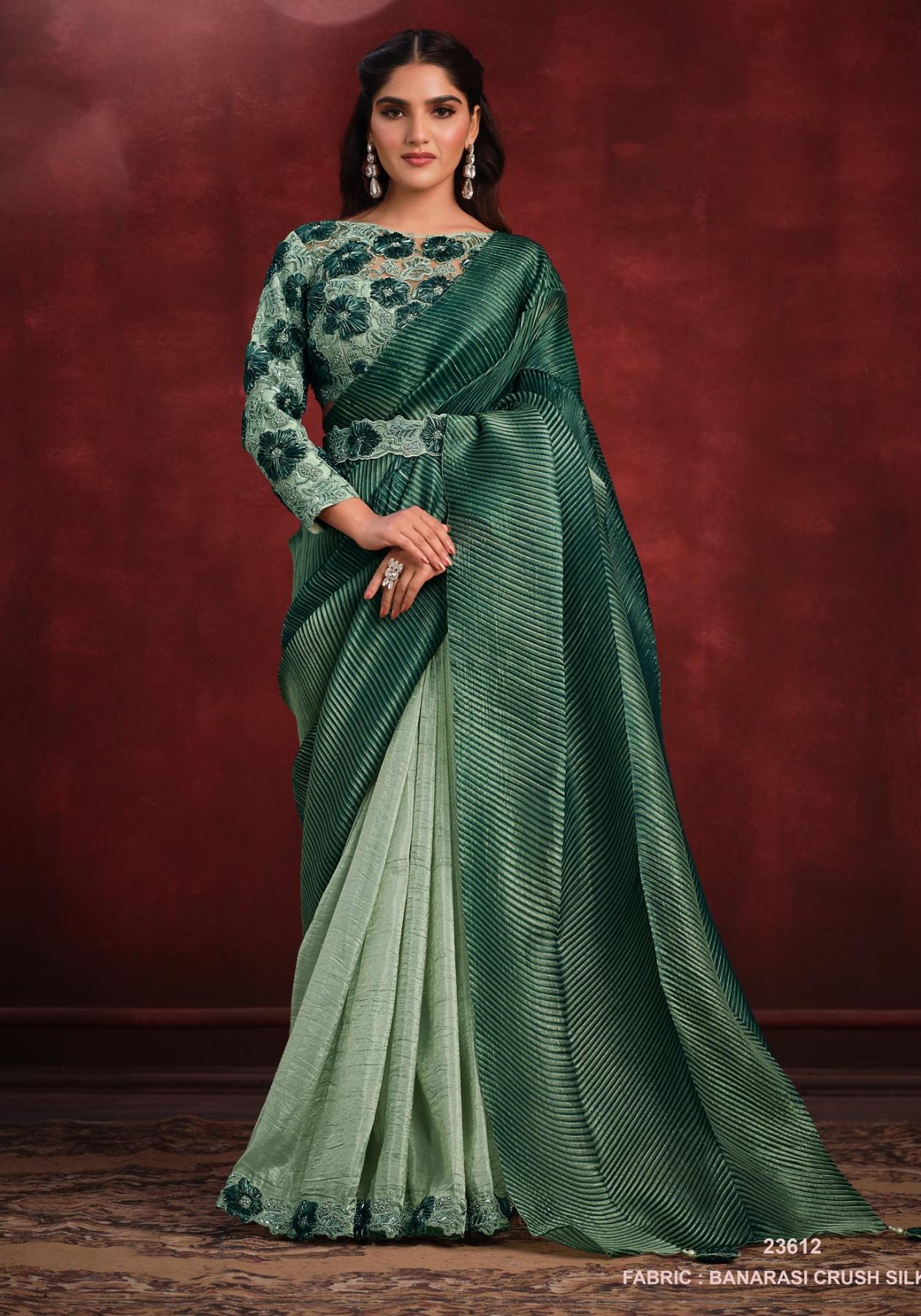 In Pre-stitched saree you will get the saree with stitched plates, belt on the waist and adjustable hooks. So you can wear the saree like a skirt