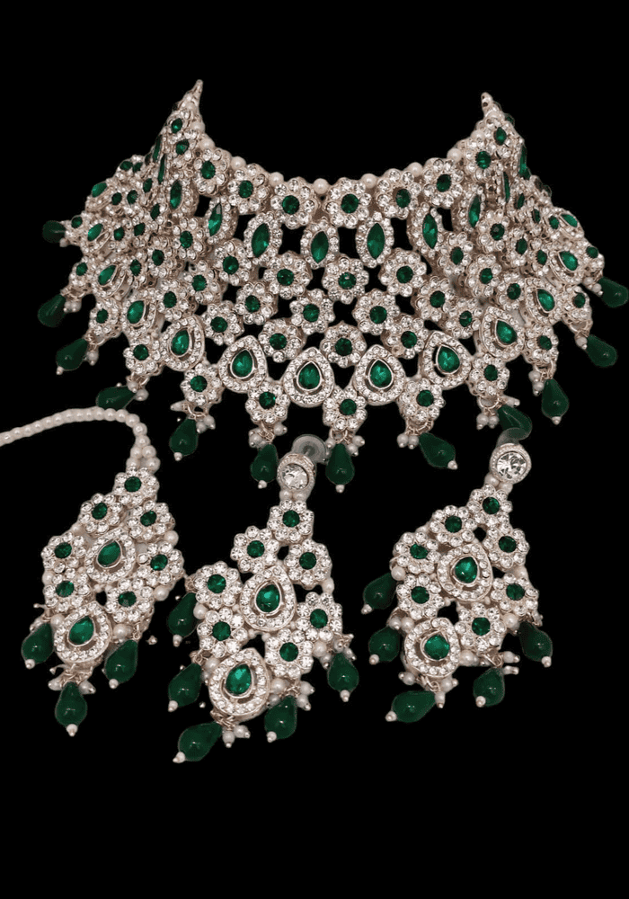 Details: 1 Necklace Set, 2 Earrings, 1 Mang Tikka.