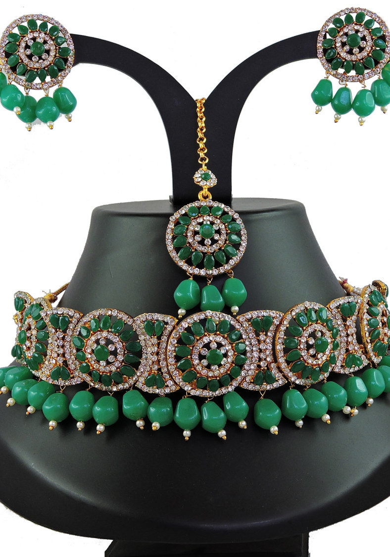Details: 1 Necklace Set, 2 Earrings, 1 Mang Tikka.