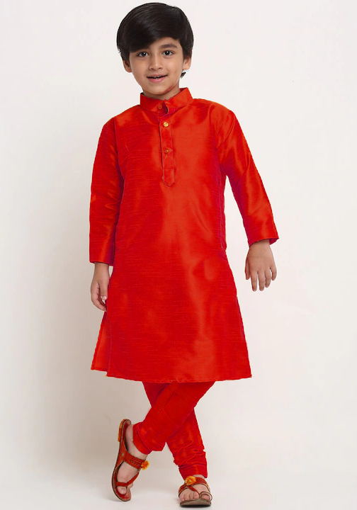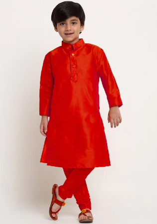 Buy Fine Silk Crimson Kids Kurta Pyjama online.