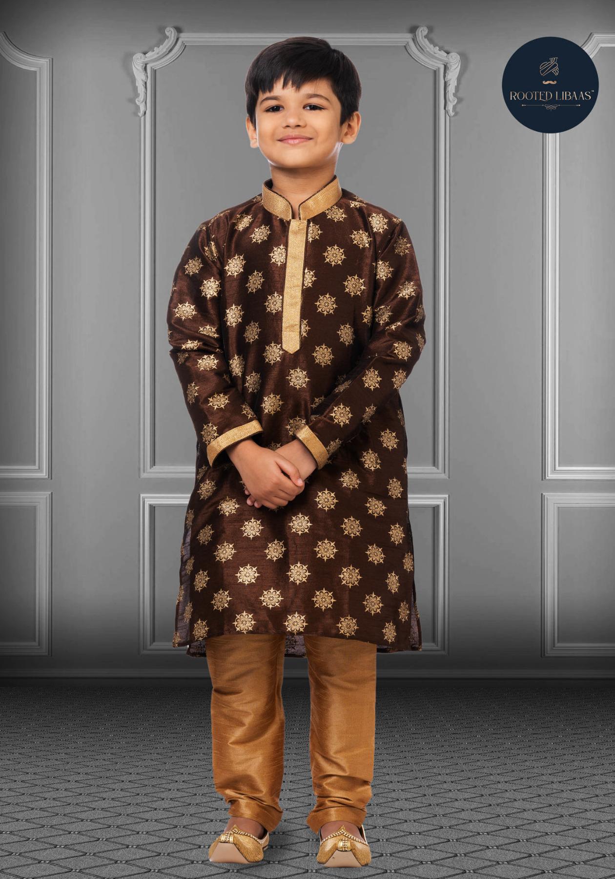 Buy Fine Silk Dark Olive Green Kids Kurta Pyjama online.