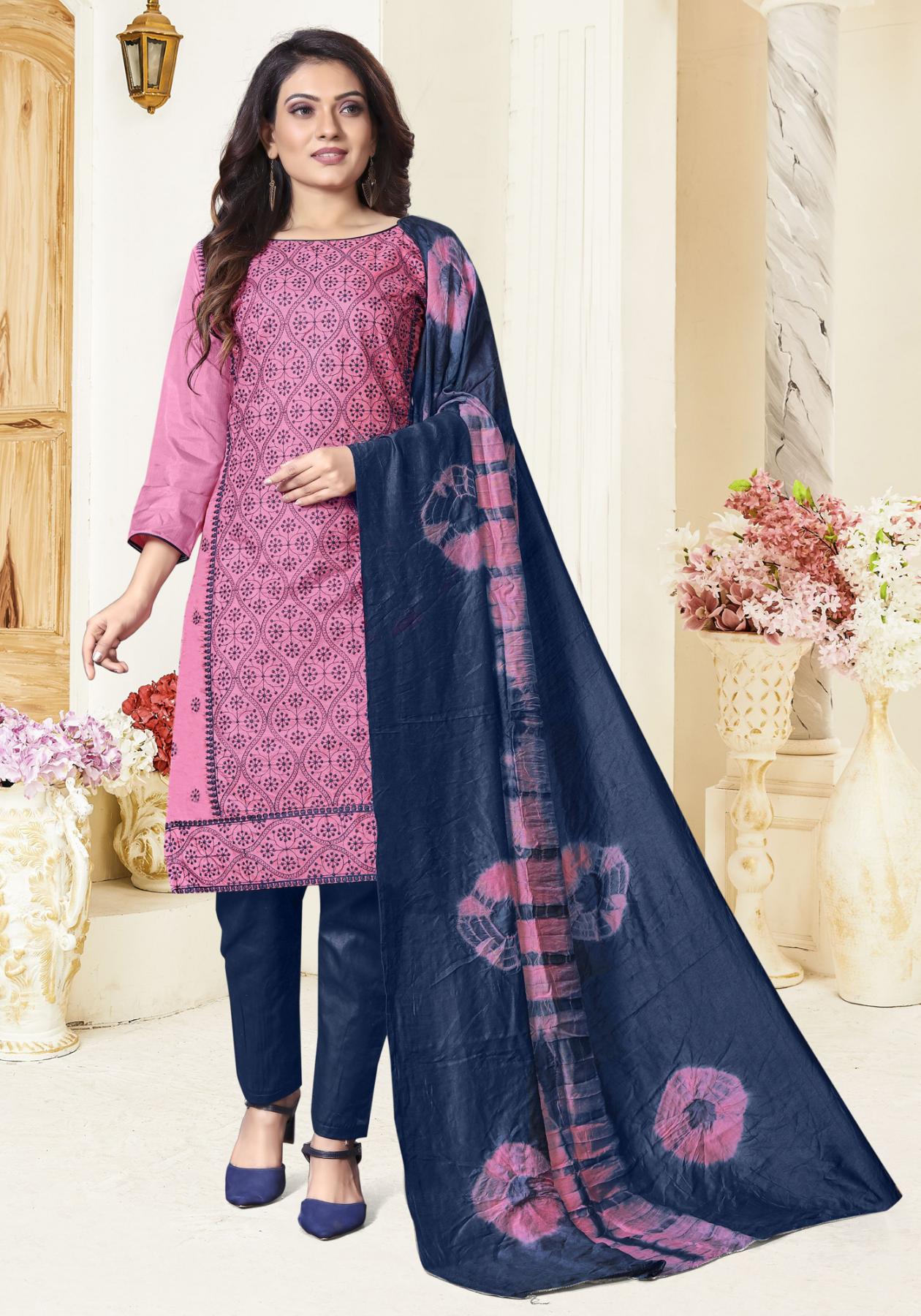 Buy Fine Silk Light Pink Straight Cut Salwar Kameez online.
