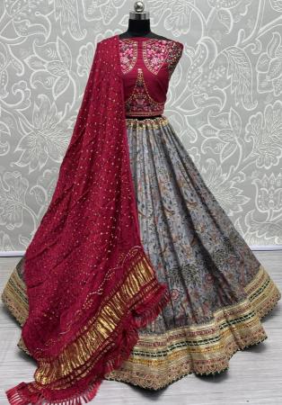 Buy Fine Silk Light Slate Grey & Maroon Lehenga Choli online.