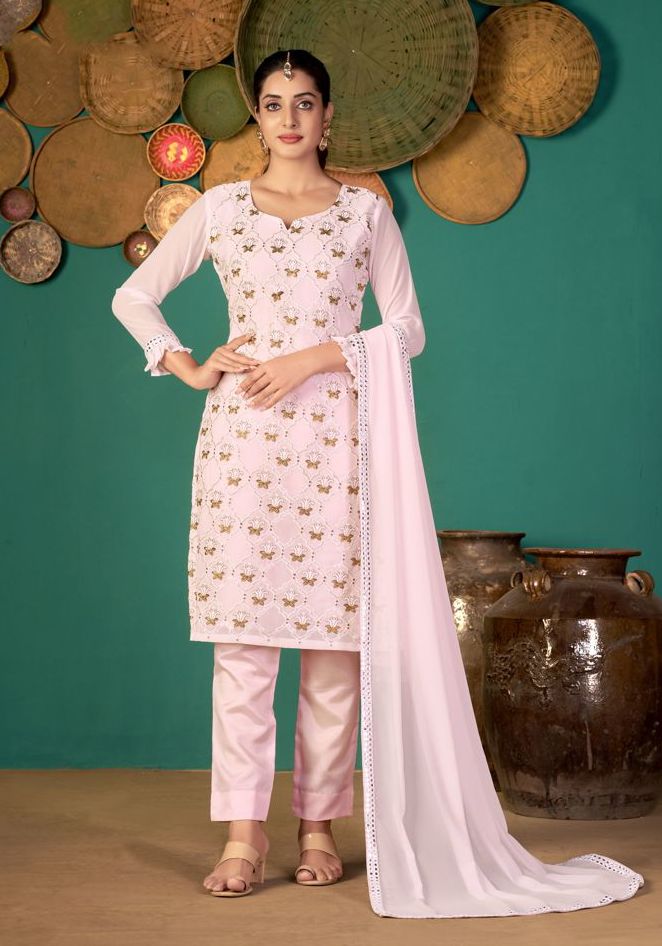 Normally size is measured between the underarm stitching lines from the stressed kameez.