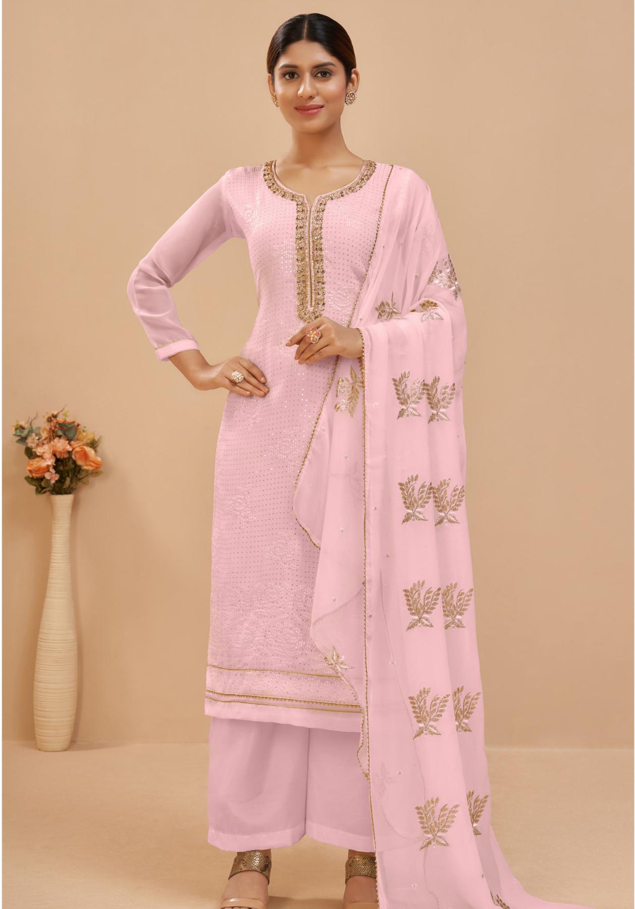 • Georgette Burly Wood Straight Cut Salwar Kameez