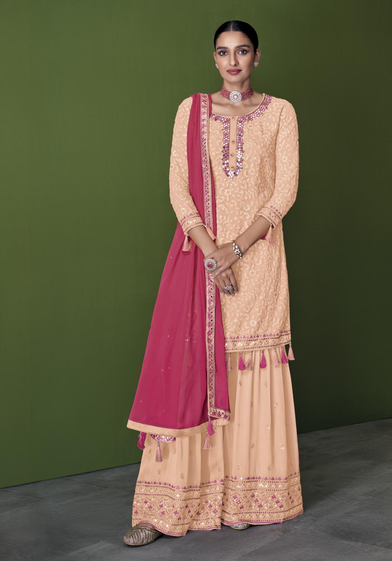 Normally size is measured between the underarm stitching lines from the stressed kameez.