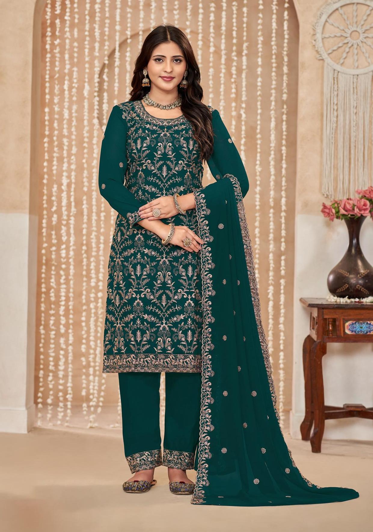 Buy Georgette Dark Green Straight Cut Salwar Kameez online.