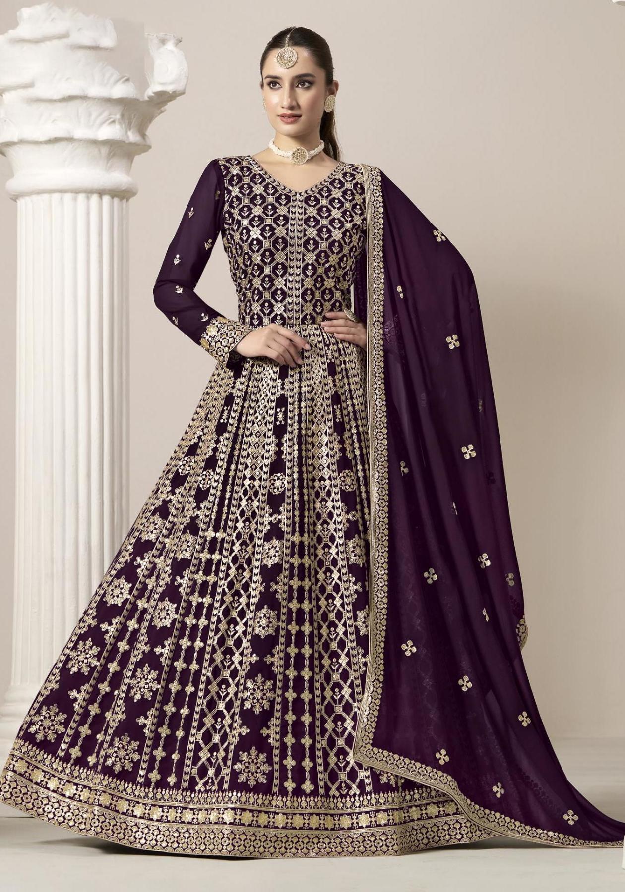 Buy Georgette Dark Magenta Anarkali Salwar Kameez online.